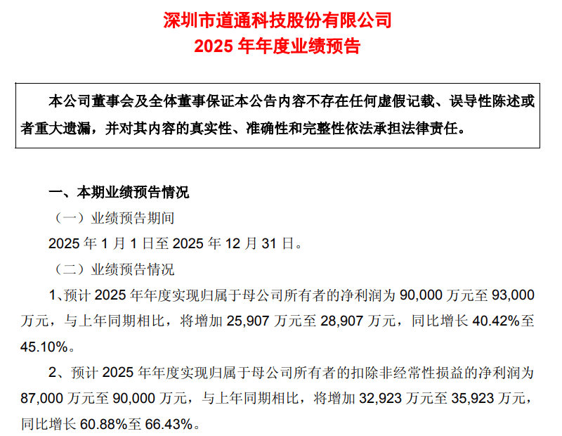 近日,深圳大卖道通科技交出了一份惊人的成绩单:预计2025年归母净利润高达9亿至9.3亿元,同比猛增40.42%至 45.10%。引人注目的是,公司已于2025年12月19日正式向香港联交所递交上市申请,冲刺"A+H"双资本平台,预计2026 年第一季度有望挂牌。 02 全球化底盘、AI化引擎与精准化卡位 道通科技的爆发并非偶然,其成功建立在三大坚实支柱之上。 第一,是深度本地化的全球化底盘。与许多依赖线上平台的卖家不同,道通科技很早就构建了线下重资产布局。其制造 网络遍布深圳、越南和美国,正在建设的墨西哥工厂将进一步完善其全球供应链,有效规避贸易风险,实现敏捷响应。 第二,是贯穿业务的AI化核心引擎。"全面拥抱AI"是道通科技业绩预告中反复出现的关键词。 第三,是切入新能源风口的精准卡位。公司敏锐抓住了全球电动汽车爆发的浪潮。其充电桩业务收入从2022年不足亿元 猛增至2024年的8.67亿元,成为增长最快的板块之一。 01 业绩与资本双引爆 道通科技的这份业绩预告,堪称一份标准的"优秀生答卷"。 其扣非净利润增速惊人,预计达到8.7亿至9亿元,同比增长60.88%至66.43%。这意味着公司的盈利增长主要 ...