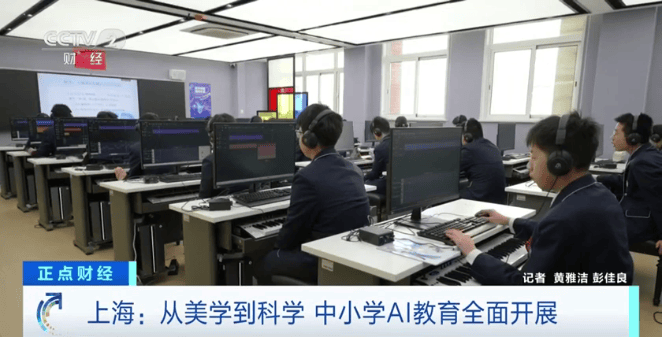 (央视财经《正点财经》)在上海,学生的课表悄然发生了变化,人工智能教育已经开始走入中小学教 育阶段。 在上海格致初中,初二学生正在上一堂AI编曲课。同学们先用AI作曲来生成自己想要的音乐,再通过 AI编曲工具把各类乐器融入。 上海市格致初级中学艺术教师 凌英:打破了传统音乐课的模式,想要去构建一套用技术赋能艺术创 作、创作驱动成长,以及应用服务校园的教学体系。 而在这个3D建模课的兴趣班,来自不同年级的学生正在学习用AI工具把自己的设计变为现实。初一学 生庞翼辰观察到大家低头写作业容易损伤视力,于是和小组同学一起设计了这个"防趴桌"神器。 记者走访了解到,小学的AI教育侧重感知和体验,中学阶段则侧重理解和应用。课程方面,目前上海 四年级、七年级已全部开设《人工智能基础》地方课程,每个年级总计不少于30课时,并鼓励各个学校 创设校本特色课程,形成"一校一案"。 上海市格致初级中学副校长 汤霞:我们打造了一些相关课程,比如说音乐工程课程、AIGC(生成式人 工智能)课程、文创设计课程,还有数字农场的课程。 通过AI工具的使用,学生既能熟悉和旋、声部、乐器等音乐要素,又能通过创作激发潜力、培养审美 能力。 为探索青 ...