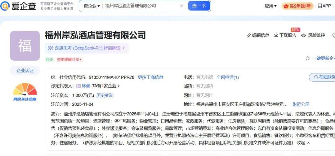 该公司大有股东为厦门俊林酒店管理有限公司,持股51%。福州岸洋酒店管理有限公司持股49%。 公开资料显示,目前福州主城区共有两个希尔顿欢朋酒店,均位于鼓楼区。 海西房产网(微信公众号:fjhxfcw)消息:福建省投资项目在线审批监管平台发布信息显示,"希尔顿欢朋酒店"已于2026年2月25日取得县级权限内企业 境内投资项目备案,批准结果信息为办结(通过)。 福州岸泓酒店管理有限公司成立于2025年11月04日,注册地位于福建省福州市晋安区王庄街道珠宝路7号5#单元现第1-11层,法定代表人为林豪。 经营范围包括一般项目:酒店管理;停车场服务;物业管理;日用品销售;家政服务;代驾服务;住房租赁;互联网销售(除销售需要许可的商品);食 品销售(仅销售预包装食品);外卖递送服务;会议及展览服务;品牌管理;市场营销策划;商业综合体管理服务;以自有资金从事投资活动;信息咨询 服务(不含许可类信息咨询服务)。(除依法须经批准的项目外,凭营业执照依法自主开展经营活动)许可项目:食品销售;餐饮服务;小微型客车租赁 经营服务;住宿服务。(依法须经批准的项目,经相关部门批准后方可开展经营活动,具体经营项目以相关部门批准文件或许可 ...