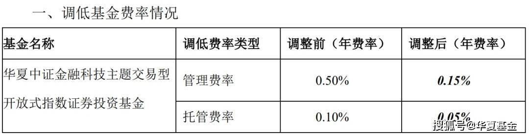 1月21日,华夏基金正式公告: 为了更好地服务广大投资者,降低投资者的理财成本,自2026年1月22日起,调低金融科技ETF华夏(516100)的管理费率、托管费率,其中管理费率将 由0.50%下调至0.15%(年费率),托管费率由0.10%下调至0.05%(年费率),与联接基金一致。 | 基金名称 | 调低费率类型 | 调整前(年费率) | 调整后(年费率) | | --- | --- | --- | --- | | 华夏中证金融科技主题交易型 | 管理费率 | 0.50% | 0.15% | | 开放式指数证券投资基金 | | | | | | 托管费率 | 0.10% | ANT SOFTER | 此次下调后,金融科技ETF华夏及其联接基金费率均为全市场同类产品最低水平,此举旨在降低投资者的投资成本,提升投资者收益获得感。 数据来源: wind,截至2026年1月22日,金融科技ETF华夏管理费+托管费合计0.2%,为同赛道费率最低档。 风险提示:1. 金融科技ETF华夏(516100)为股票基金,主要投资于标的指数成份股及备选成份股,其联接基金主 要通过投资目标ETF间接跟踪标的指数,预期风险和预期收益 ...
