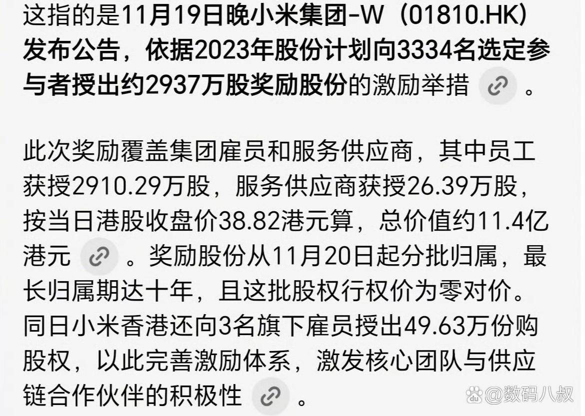 雷军成功的又一个原因:懂的分享! 今天,小米汽车50万台下线之际,小米拿出2937万股奖励员工及供应商羡煞旁人,纷纷表示雷总太豪爽了。 ...