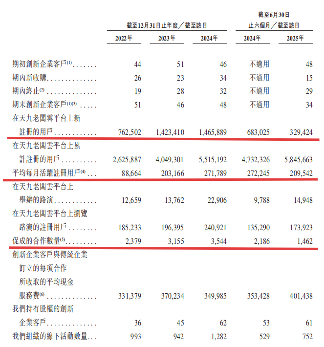 根据招股书内容,早在2014年,天九共享已提供业务增长的加速服务。2017年该公司推出企业家服务平 台天九老板云,并持续迭代,逐渐形成了依托企业及企业家全景数据库,由大数据分析和AI智能应用 系统驱动的一站式企业及企业家服务平台。截至最后实际可行日期,天九共享的天九老板云平台拥有超 过620万名注册用户。 央广网北京1月14日消息(记者 齐智颖)近日,天九共享智慧企业服务股份有限公司(以下简称"天九 共享")向港交所提交招股书,冲刺港股上市。 央广财经记者发现,尽管近年来公司的利润持续增长,但2025年上半年,其收入以及多个业务核心运营 指标均出现下滑。并且2023年、2024年以及2025年上半年,天九共享各期利润的103.5%、97.6%及 109.9%分别来自按公允价值计入损益的金融资产的公允价值收益,这种依赖投资估值增长带动利润增 长的模式引发市场关注。 值得注意的是,这家公司的实际控制人正是世界杰出华商协会创办人卢俊卿。 "价值创造引擎"还是"流量展示场"? 天九共享定位为企业资源共享服务平台,致力于推动创新企业加速业务发展,同时服务传统企业的转型 升级。根据该公司招股书引用的弗若斯特沙利文的资料显 ...