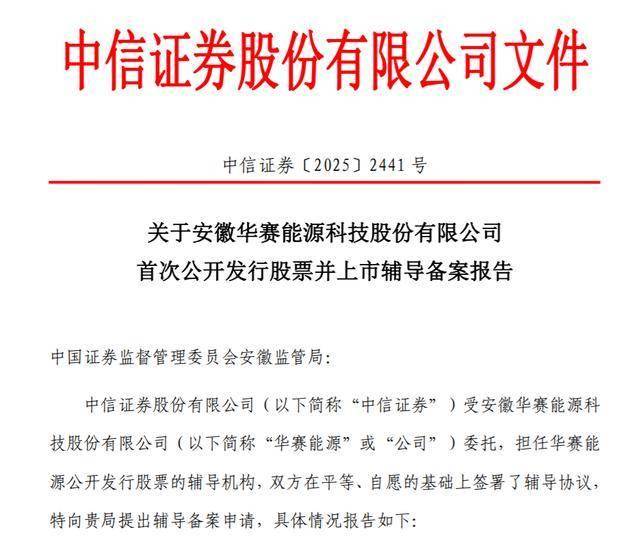 瑞财经 王敏 1月14日,安徽华赛能源科技股份有限公司(以下简称"华赛能源")在安徽证监局启动IPO 辅导备案,辅导机构为中信证券。 | 辅导对象 | 安徽华赛能源科技股份有限公司 | | | | --- | --- | --- | --- | | 成立日期 | 2020-01-09 | | | | 并按资本 | 6,487.40 万元 | 法定代表人 | 陈任峰 | | 法案策划 | 安徽省芜湖市鸠江区湾里街道九华北路 118号 | | | | 控股股东及 持 股 比 例 | 清峰能源直接持有公司 40.08%股权,为发行人的控股股东。 | | | | 行业分类 | M74 专业技术服务业 | 在其他交易场 所(申请)挂牌 | 无 | | | | 或上市的情况 | | | 经营范围 | 能源科技、新能源科技、储能系统、节能技术领域内的技术开发、技术 | | | 华赛能源成立于为2020年1月,法定代表人为陈任峰,注册资本6487.4万元。公司主营业务涵盖新型能 源电站业务、电力电子设备配套业务两大板块,业务聚焦新能源与储能领域。 华赛能源的控股股东清峰能源直接持有公司40.08%股权;公司实际控制人陈任峰通 ...