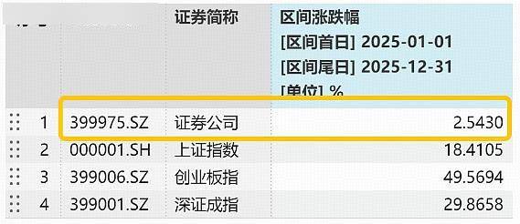 1月14日盘后,中信证券发布2025年度业绩快报,全年实现营业收入748.30亿元,同比增加28.75%;归属于母公司股东的净利润300.51亿元,同比增加 38.46%,喜提"双增长"。这也是中信证券历史首次全年净利润突破300亿元。 对于业绩创纪录的原因,中信证券在报告中表示,2025年国内资本市场整体呈上行态势,市场交投活跃度显著提升,投资者信心增强,A股主要指数均实现 上涨。公司积极把握市场机遇,稳步做大客户市场规模,经纪、投资银行、自营业务等收入均实现较快增长。 龙头券商的亮眼业绩,也在一定程度上反映了券商行业2025年业绩强劲复苏的态势。开源证券研报指出,2025年股市上涨明显,交易活跃,投行IPO复苏, 券商经纪、投资收入同比高增驱动净利润增长,预计2025年上市券商扣非归母净利润同比增加61%,2025年四季度单季度同比增加38%。 东莞证券也表示,2025年证券行业多项核心指标创历史新高,彰显行业全面回暖态势。整体来看,行业在交投、融资、投资与资本中介业务均实现强劲增 长,结构优化与政策驱动成为主要动力。 | - - - - - - | | 证券简称 区间涨跌幅 | | | --- | -- ...