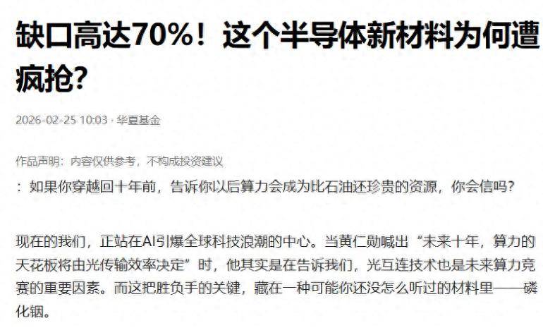 当下全球科技圈正掀起一场隐秘的资源争夺战,争夺的核心并非稀土,而是一种名为磷化铟的小众半导体材料。 各国企业争相抢购,订单排期已排至明年,价格一路飙升。很少有人知道,中国手握全球80%的精铟产能,是妥妥的资源大国,却在高端磷化铟领域处处受 制于人,这背后的差距,藏着中国半导体产业的关键痛点。 磷化铟的突然爆火,并非偶然,而是AI算力革命与高端通信技术迭代的必然结果。 传统硅材料在高频高速场景下的短板日益凸显,而磷化铟的电子迁移率是硅的10倍以上,能轻松支撑100GHz以上超高频信号处理,是高速光模块、卫星通 信、激光雷达的核心材料,更是AI数据中心突破算力瓶颈的关键。 这种材料的稀缺性,既源于自身的制备难度,也源于供需的严重失衡。2025年,全球磷化铟器件需求已飙升至200万片,而全球能稳定供货的产能仅60万 片,缺口高达170万片。 更关键的是,磷化铟的扩产周期长达12至24个月,即便头部企业加急扩产,短期内也难以缓解紧缺态势,这也让其成为全球争抢的"香饽饽"。 美国AXT公司的数据最能体现其热度,2024年第三季度,该公司磷化铟相关业务收入暴涨250%,创下三年新高,截至2025年,其手上积压的订单就达5 ...