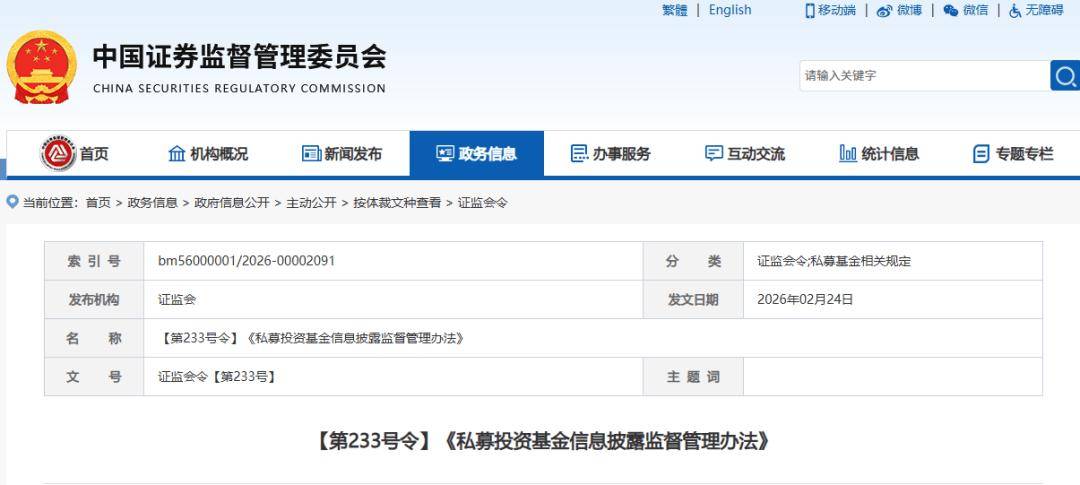 新闻资讯 | 中国证监会发布《私募投资基金信息披露监督管理办法》