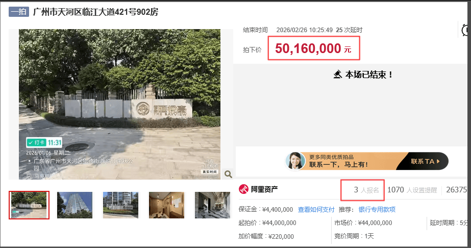 刚刚,许家印侄子的汇悦台,卖出去了! 成交总价5016万,折合单价15.8万/平! 开拍前就有3位神秘土豪报名,出价很快,竞拍29轮,最后被一位苏姓土豪拿下! | 状态 | 竞买号 | 价格 | 时间 | | --- | --- | --- | --- | | 领先 | Y8573 | 50,160,000 | 2026年02月26日 10:20:49 | | 버를 | C3505 | 49,940,000 | 2026年02月26日 10:19:51 | | (田昌 | Y8573 | 49,720,000 | 2026年02月26日 10:17:04 | | (田昌 | C3505 | 49,500,000 | 2026年02月26日 10:16:44 | | (田昌 | Y8573 | 49,280,000 | 2026年02月26日 10:12:28 | | (田昌) | C3505 | 49,060,000 | 2026年02月26日 10:11:48 | | (田昌 | Y8573 | 48,840,000 | 2026年02月26日 10:09:55 | | (田昌 | C3505 | 48,6 ...