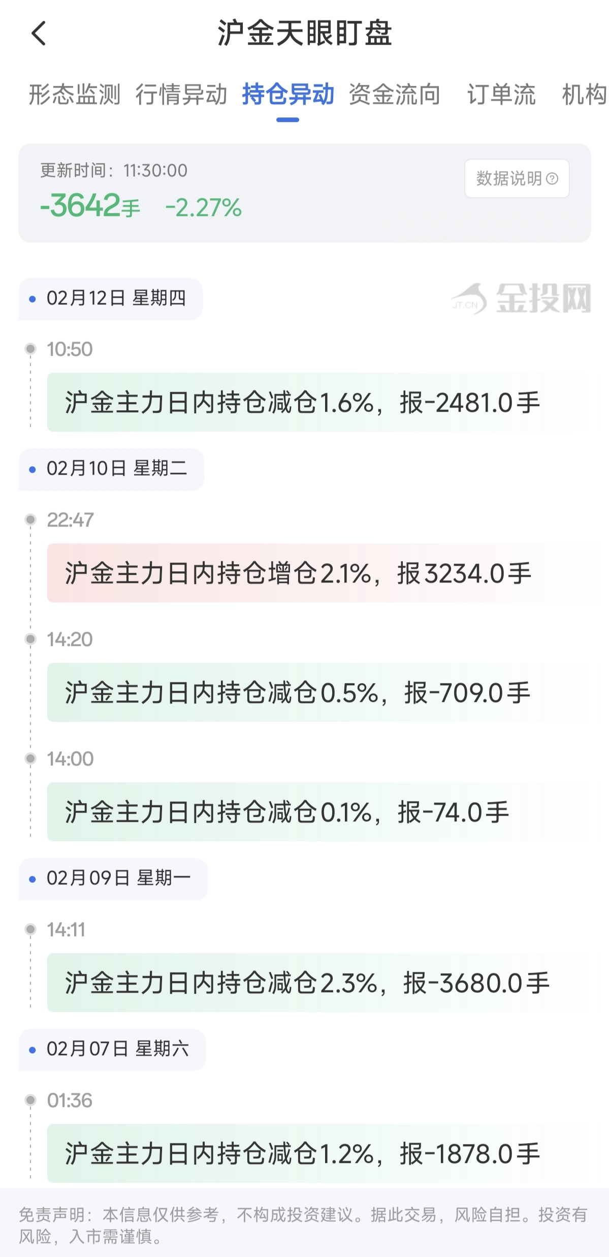 天眼盯盘沪金持仓异动:2月12日沪金主力日内持仓减少3642手