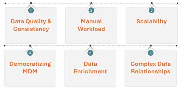 Core Insights - Master Data Management (MDM) is essential for organizations, providing shared definitions for key entities to support operations, reporting, and analysis [1] - Traditional MDM often fails to meet expectations due to slow implementation, heavy reliance on manual processes, and dependence on a few expert teams [1][2] - Generative AI is set to transform MDM by introducing context, pattern recognition, and automation, making data management more adaptive and scalable [1][4] Need for Evolution - The environment in which MDM was originally designed has changed significantly, with larger data volumes, more diverse data sources, and faster change rates, making traditional MDM inadequate [2][4] Challenges in Traditional MDM - Data quality and consistency are foundational but increasingly difficult to maintain in a complex ecosystem with diverse data sources [4] - Manual workloads dominate data management tasks, slowing down processes and tying scalability to human resources [4] - Traditional MDM platforms struggle with scalability as data volumes grow, impacting governance and integrity [4] - Access to master data is often limited to experts, hindering collaboration and distancing business teams from the data they rely on [4] - Enriching master data with external sources can create value but is often costly and slow to implement at scale [4] - Complex relationships between entities are difficult to represent and maintain in traditional MDM models [4] Enhancements through Generative AI - Generative AI enhances core MDM functions by introducing context, learning, and automation, shifting reliance from manual operations to intelligent processes [5][7] - Intelligent management reduces manual review by prioritizing queues and suggesting solutions, thus shortening resolution cycles [7] - Context-based standardization allows for more meaningful data normalization, moving beyond fixed rules to incorporate real-world context [7] - Smart matching without fixed thresholds improves accuracy by using semantic comparisons rather than rigid scoring models [7][8] Improved Decision-Making and Data Quality - Generative AI enables more intelligent survival decisions by evaluating data quality signals and context to determine the most reliable values [8] - Context-aware data quality management identifies semantic errors that traditional rule-based checks might miss, allowing for earlier detection of quality issues [8][10] Core Functions of Generative AI in MDM - Generative AI strengthens data quality, management, and governance, enhancing daily MDM execution without altering its fundamental responsibilities [9] - It improves data quality and validation by addressing context-related issues that traditional MDM struggles to resolve [10] - Core entity identification and golden record creation are enhanced through natural language processing and pattern recognition, improving accuracy in identifying duplicates and relationships [12] - Governance execution is improved as Generative AI helps MDM understand context, ensuring compliance with internal policies and external regulations [14][16] Use Cases for Generative AI in MDM - Generative AI can automatically enrich master data by sourcing missing information from trusted external sources [19] - It checks data values for contextual reasonableness, enhancing data validation processes [19] - Context-aware standardization allows for the recognition of synonymous terms, improving data consistency [19] - Automated compliance monitoring helps detect regulatory violations by comparing master data against known lists [19] - Generative AI can identify relationships between entities, detect anomalies, and suggest corrections, enhancing overall data integrity [20] Integration of Generative AI into MDM - Generative AI can be integrated throughout the MDM lifecycle, from data collection to management and publication, ensuring data quality and governance are addressed early [24][26] - It operates as an additional layer on top of existing MDM systems, enhancing daily operations without changing the core principles of MDM [26] Market Trends and Future Directions - Organizations are increasingly adopting Generative AI in a practical manner, often through pilot projects that demonstrate value before scaling [27] - Some companies are fundamentally redesigning MDM to integrate AI at its core, moving beyond mere enhancements to create a more intelligent system [28] - The use of knowledge graphs and industry standards is becoming more prevalent to support interoperability and richer data exchanges [29] Conclusion - Generative AI is set to revolutionize MDM by making processes faster, more automated, and less reliant on manual oversight, ultimately transforming the user experience and enhancing decision-making capabilities [30]