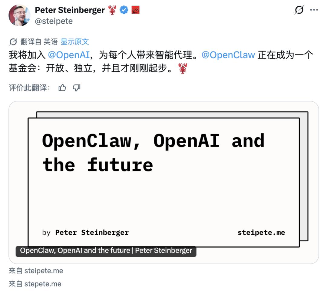 突发,OpenClaw之父宣布加入OpenAI,小扎抢人失败