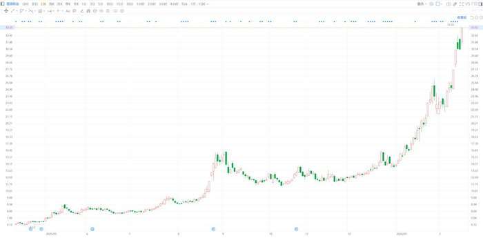 章源钨业(002378.SZ)今日早盘涨停,报33.55元,股价创历史新高,市值403亿元。该股暂已录得5天3 板,年内累涨1.36倍。消息面上,章源钨业公布2026年2月下半月长单采购报价:55%黑钨精矿73.00万 元/标吨,55%白钨精矿72.90万元/标吨,仲钨酸铵(国标零级)107.00万元/吨。以上单价含13%增值税。 上述价格较2月上半月长单采购报价均有所上调。(格隆汇) ...