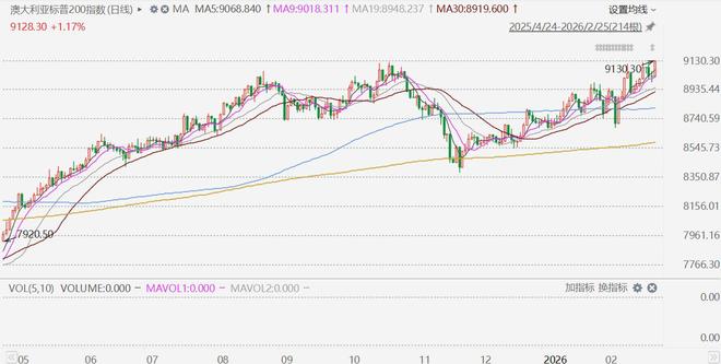 格隆汇2月25日|澳大利亚S&P/ASX200指数盘中一度涨1.2%,报9130.3点,创历史新高;最终收涨 1.17%,报9128.30点,创收盘历史新高。澳大利亚S&P/ASX200指数年内累涨4.75%。 ...