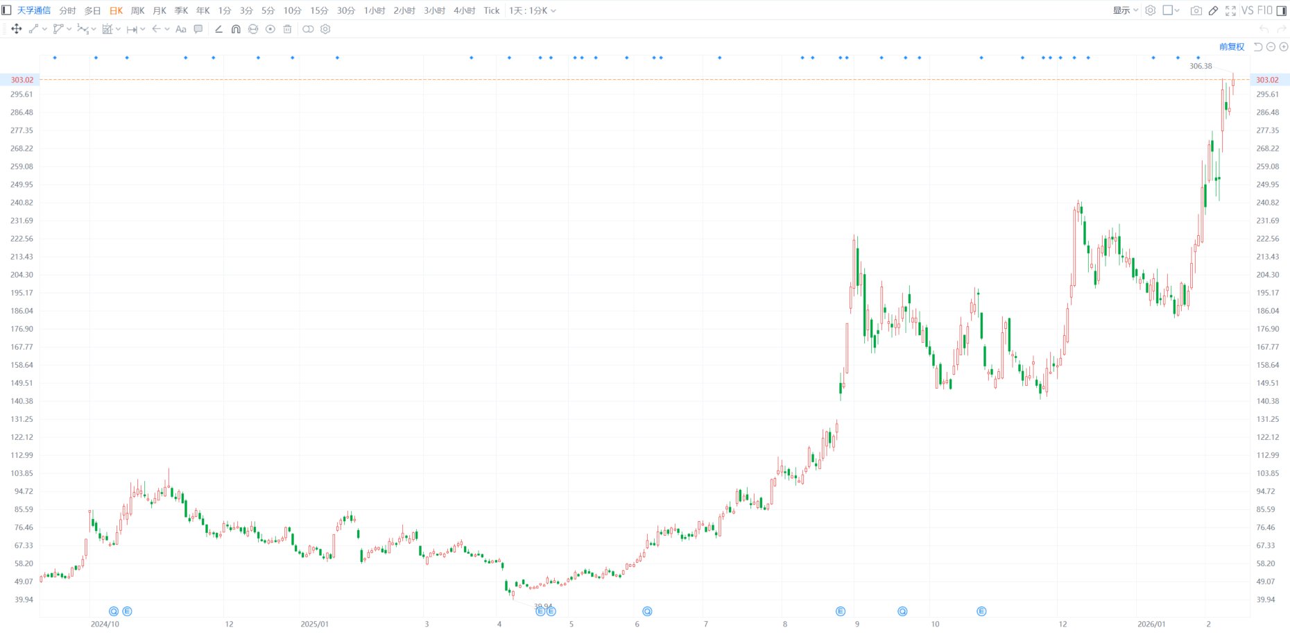 格隆汇2月12日丨天孚通信(300394.SZ)涨5.23%,报303.6元,股价创历史新高,总市值2360.23亿元。 ...