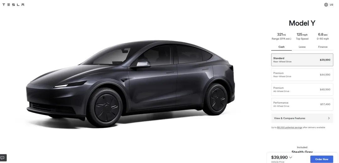 本文来自微信公众号:每日经济新闻 (ID:nbdnews),作者:黄辛旭,原文标题:《特斯拉,大消息!股价震荡,在中国市场销量下滑,市场份额缩 水》,题图来自:视觉中国 预热已久的"平价"特斯拉终于来了。 10月8日,特斯拉北美官网上线售价3.999万美元(约合人民币28.5万元)的新版Model Y,新车被命名为"标准版本Model Y",起售价较此前版本Model Y 下探5000美元,降幅约11%。 图片来源:特斯拉官网 同时,特斯拉北美也同步推出售价3.699万美元(约合人民币26.4万元)的"标准版本Model 3",比现售的"高级后驱版"Model 3便宜5500美元,成为特斯拉 目前在售最便宜的车型。 不过,与此前车型相比,新增车型在售价下探的同时,配置也有所调整。例如,标准版本Model Y与标准版本Model 3的方向盘与外后视镜需手动调节,且 仅前排座椅支持加热。在辅助驾驶配置上,两款车型均未配备特斯拉的基础高级驾驶辅助系统——Autopilot自动辅助驾驶。新车仅搭载了交通感知巡航控 制系统,而构成"Autopilot"功能核心的自动转向功能则未包含在内。续航方面,标准版本Model Y ...