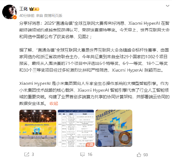 小米王化:Xiaomi HyperAI 喜提2025“直通乌镇”全球互联网大赛特等奖
