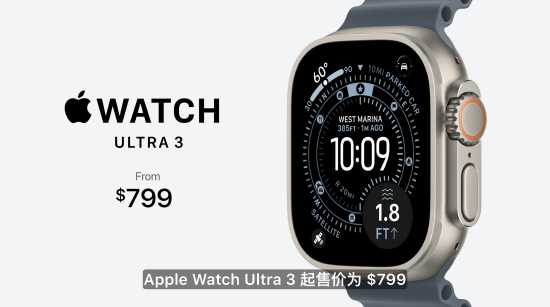 苹果最大手表Apple Watch Ultra 3发布,定价约5700元