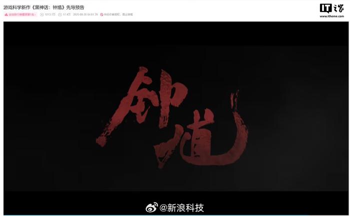 黑神话钟馗先导预告播放量破千万,登顶B站榜首
