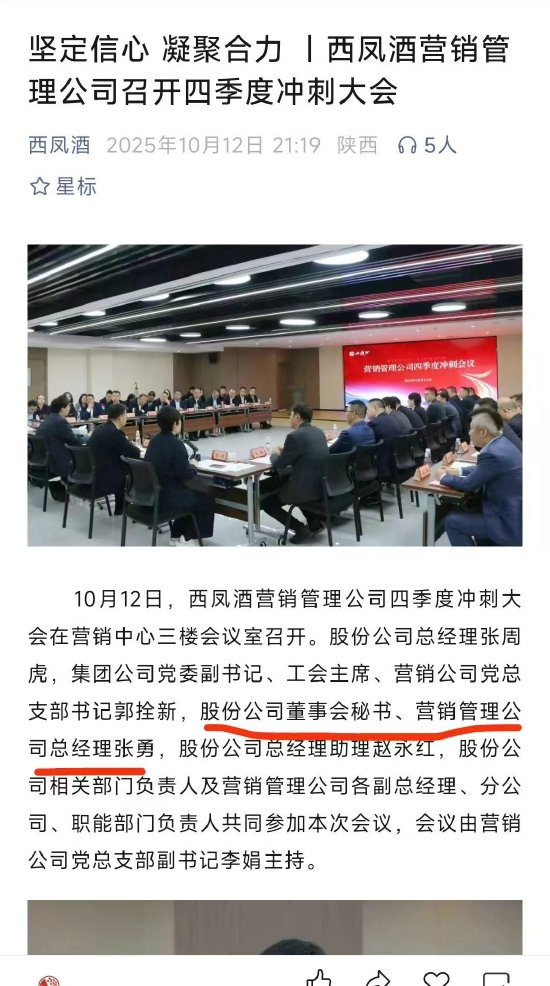 Core Insights - Zhang Yong has been appointed as the General Manager of Xifeng Liquor Marketing Management Company, previously serving as the Executive Deputy General Manager of Xifeng Marketing Company [1] Group 1 - Zhang Yong's new role was announced on October 21, indicating a leadership change within the company [1] - In June, Zhang Yong was also reported to be the Secretary of the Board of Directors for the shareholding company and the Executive Deputy General Manager of the Marketing Management Company [1]