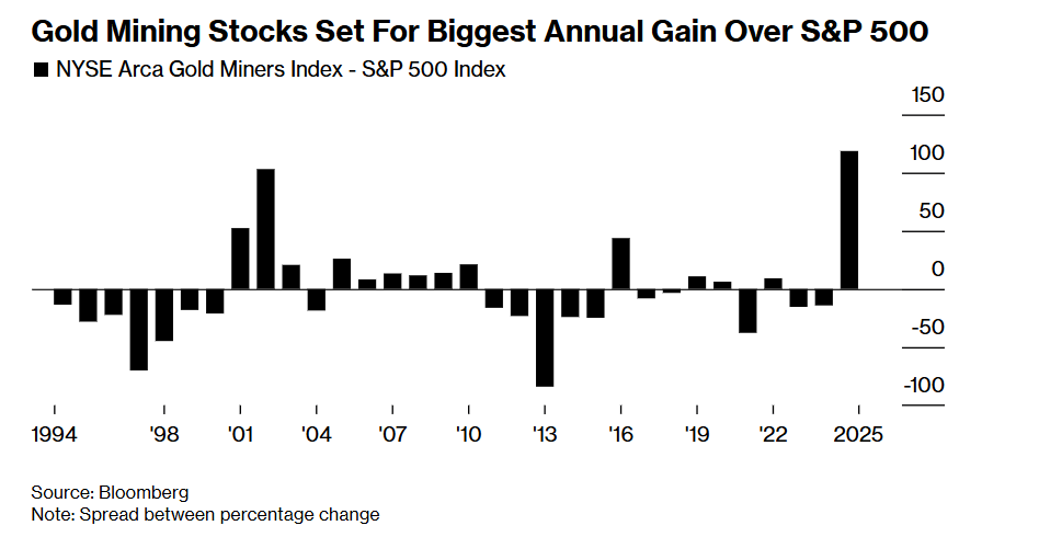 上月从跟踪黄金矿业股的最大ETF中撤出6.69亿美元的投资者,在周二金价暴跌后显然显得明智。 随着现货黄金遭遇十多年来最严重抛售,范艾克黄金矿业ETF(VanEck Gold Miners ETF)暴跌9.4%,创下2020年3月以来最惨跌幅。纽蒙特 矿业公司(Newmont Corp.)、阿格尼科鹰矿业公司(Agnico Eagle Mines Ltd.)、巴里克矿业公司(Barrick Mining Corp.)等矿企股价均下跌 约9%——纽蒙特与阿格尼科抹去了一周多的涨幅,巴里克则回吐了一个多月的收益。该ETF在周三盘前交易中又下跌4%。 此前已有大量警示称,黄金2025年以来上涨约60%、突破每盎司4000美元的行情,已脱离现实。而黄金矿企的处境更令人担忧:它们今年的 股价涨幅是黄金本身的两倍。 "黄金板块的涨幅,尤其是大盘股的涨幅,可能有些过猛过快——毕竟黄金本身的涨幅仅为矿企股价的一半。"菲耶拉资本公司(Fiera Capital Corp.)投资组合经理坎迪斯·邦松德(Candice Bangsund)表示。 邦松德预计,未来几个月黄金与矿企股价将趋于平稳,尤其是如果美联储未能如市场预期那样完成 ...