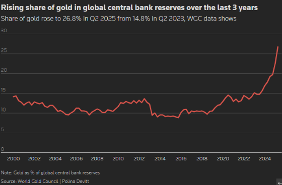 黄金今年迄今上涨54%,有望创下自1979年以来最大年度涨幅,并在3月突破了3000美元、10月突破 4000美元的一系列关键心理阻力位。 推动这轮涨势的是政治紧张局势和美国关税不确定性,并导致最近又出现了一波害怕错过(FOMO)的 买盘。 世界黄金协会高级市场策略师里德说,"涨势的性质已经改变,现在由西方投资者推动,而不是过去两 年大部分时间里更稳定的新兴市场买家,这意味着更多的不确定性和波动性,即使推动黄金的因素看起 来会持续下去。" 周一,黄金创下每盎司4381美元的纪录,这是一年前很少有人预测的水平。前往下周在日本举行的伦敦 金银市场协会(LBMA)会议的代表们一年前曾预测,到现在价格将达到2941美元。 警惕标普500指数上涨 市场专家们正密切关注标普500指数的上涨以及投资者资金同时流入黄金,他们注意到历史上股市大幅 调整曾迫使抛售包括黄金在内的避险资产的情况。 在实现了如此多的重要里程碑后,金价周二下跌5%,创下五年来最陡峭的单日跌幅,衡量价格变化幅 度的市场相对强弱指数(RSI)七周来首次从"超买"降至"正常"。 Julius Baer分析师Carsten Menke表示,"在如此急剧和陡峭的 ...