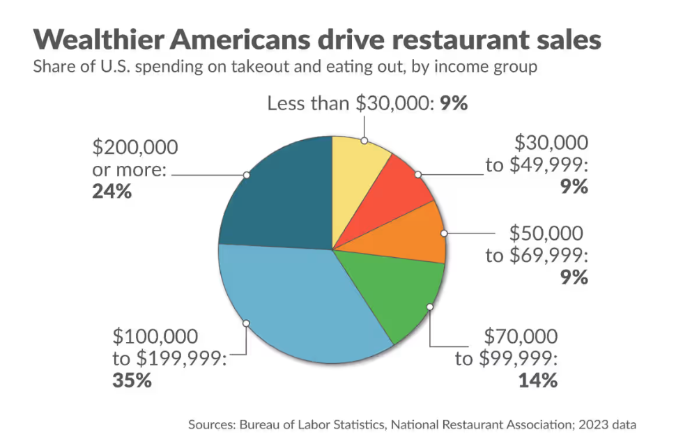 AI播客:换个方式听新闻 下载mp3 音频由扣子空间生成 当美国经济出现压力迹象时,美国人最先从预算中砍掉的开支之一就是外卖和外出就餐。这是经济衰退最可靠的早期预警信号之一。 但目前来看,人们并未大幅削减这类开支,高收入群体尤其如此。在特朗普重返白宫、大萧条以来最严重的贸易战爆发、联邦政府最新停摆的 动荡之年里,这对美国经济而言是个积极信号。 政府数据显示,在截至8月的12个月里,美国酒吧和餐厅销售额增长6.5%,高于去年同期的4.3%。今年春夏两季,美国人在外出就餐上的花费 也相当可观。 "尽管面临重重阻力,餐饮业仍展现出惊人的韧性。"全美餐饮协会(National Restaurant Association)首席经济学家查德·莫特雷(Chad Moutray)表示,"好消息是,我没看到经济衰退的迹象——消费者还在坚持消费。" 销售额与促销活动:餐饮业红火的原因 是什么让餐厅生意持续火爆? 高收入美国人是推动餐饮业消费增长的主要群体 "股市近期的强劲表现是重要推动因素。"牛津经济研究院(Oxford Economics)美国副首席经济学家迈克尔·皮尔斯(Michael Pearce)表示。 餐饮预订数据也 ...