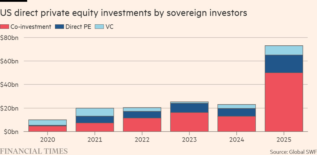 AI播客:换个方式听新闻 下载mp3 音频由扣子空间生成 美国当局已提议进行一项重大改革,可能让主权财富基金需为其在美国的投资缴纳税款,这将对美国私募资本行业的部分最大投资方造成冲击。 美国国税局于去年12月发布提案,计划修订《国内税收法》中主权财富基金及部分公共养老基金用于申请美国税收豁免的相关条款。这是特朗普政府出台 的一系列政策冲击中的最新举措,这些政策已促使主权财富基金分散其在美国的投资敞口。 咨询公司Global SWF的数据显示,2025年全球主权财富基金的私人信贷投资达5500亿美元。去年,它们在美国的直接私募股权投资规模增长了两倍多,达 到730亿美元,其中三分之二为联合投资。 全球主权主权财富基金的美国直接私募股权投资规模 在提案中,美国国税局还计划重新制定主权财富基金在私募股权投资组合公司中持股的税收规则。目前,只要主权财富基金在私募股权组合公司中不拥有 经济或投票控制权,其少数股权通常被视为投资活动,无需纳税。但根据拟议修改内容,"控制权"的定义将扩大,包括拥有通常伴随战略持股而来的某些 投资者权利。 这些变化还可能影响所谓的"blockers",即主权财富基金和养老基金在通过联合投资结 ...