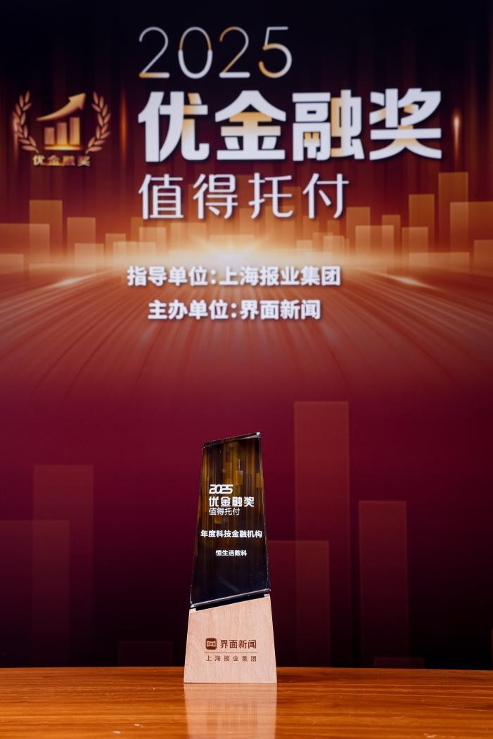 12月16日,由上海报业集团指导,智通财经主办的2025第八届界面财经年会在上海盛大举行,本次大会 以"拥抱变革·破局共生"为核心命题,共同探寻中国经济的韧性根基、转型路径与增长新范式,备受瞩 目的2025"优金融奖"也同期揭晓。作为大数据与人工智能双轮驱动的科技金融服务平台,恒生活数科凭 借其在科技金融领域的创新成果与技术优势,与工银瑞信基金管理有限公司和金融壹账通共同荣获 2025"优金融奖"年度科技金融机构殊荣。 恒生活数科荣膺2025"优金融奖"年度科技金融机构 "本次获奖是对我们科技金融服务能力的充分认可,将激励我们通过技术成果转化持续为金融消费者带 来普惠便捷的数智生活新体验。"恒生活数科负责人表示,作为值得托付的科技金融服务机构,未来将 继续聚焦用科技创新诠释务实精神与创新活力,推动"科技+金融"融合发展,助力国家高水平科技自立 自强。 作为科技金融领域的深耕者,恒生活数科本次荣膺2025"优金融奖"年度科技金融机构重磅奖项,与其将 核心技术研发与场景应用作为发展根基的理念息息相关。近年来,恒生活数科将金融服务深度嵌入民生 场景,让技术成果转化为普惠便捷的数智生活服务体验。同时,以数据安全技术筑 ...