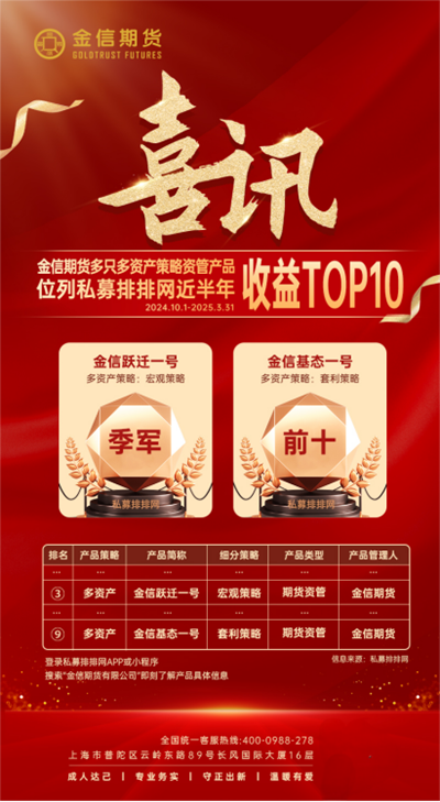 喜讯 |金信期货多只多资产策略资管产品位列私募排排网近半年收益TOP10