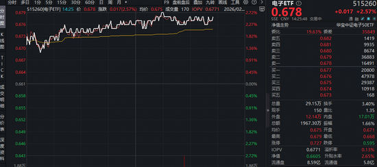 今日(2月9日)荟聚电子板块核心龙头的电子ETF(515260)高位活跃,场内涨幅一度上探2.72%,现 涨2.57%,盘中收复5日、60日均线。 国金证券指出,谷歌、亚马逊、Meta、OpenAI及微软的ASIC数量将在2026-2027年将迎来爆发式增长。 AI强劲需求带动PCB价量齐升,目前多家AI-PCB公司订单强劲,正在大力扩产,业绩高增长有望持 续。继续看好AI PCB及核心算力硬件、半导体设备及苹果产业链。 拥抱科技巨头,抢占发展先机!电子ETF标的指数覆盖热门科技概念,截至1月底,苹果、英伟达、谷 歌产业链权重占比分别为45.19%、27.87%、21.85%,深度绑定全球科技龙头成长红利,有望受益于科 技巨头产业扩张与技术创新。 成份股方面,芯原股份领涨超15%,晶合集成、三环集团涨逾7%,长电集团、兆易创新、澜起科技涨 超5%,士兰微、寒武纪、胜宏科技等个股跟涨。 | 序号 | 名称 | 涨跌幅 ▼ | 两日图 | 申万一级行业 | 申万二级行业 | 申万三级行业 | 总市值 | 成交额 | | --- | --- | --- | --- | --- | --- | --- | --- | ...