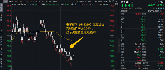 11月19日午后,果链含量44%的电子ETF(515260)随市回调,场内价格现跌0.79%,值得关注的是, 该ETF场内宽幅溢价,实时溢价率高达0.38%,显示买盘资金更为强势,或有资金逢跌抢筹! 成份股方面,瑞芯微领涨超2%,沪电股份、领益智造、华勤技术、寒武纪、立讯精密逆市飘红。 消息面上,电子ETF标的指数重仓的果链和半导体方向,均有利好来袭: 1、果链方面,市场研究公司Counterpoint Research最新发布的监测数据显示,10月苹果在中国智能手机 市场交出亮眼成绩单。受iPhone 17系列热销拉动,当月苹果在华手机销量同比激增37%,市场份额一 举攀升至25%,这是自2022年以来苹果单月市场份额首次突破四分之一关口。 华鑫证券指出,中国市场基础款iPhone17成为主要增长动力,相较于上代产品销量几乎翻倍,凭借更强 芯片、更优显示、更大存储和升级前摄,以相同定价提供极高性价比,受到消费者追捧。随着iPhone17 系列销量超预期以及苹果将于2026-2027年推出更多新品,果链有望迎来新一轮的景气周期,中国大陆 相关供应链有望持续受益。 2、半导体方面,第二十二届中国国际半导体博览会 ...