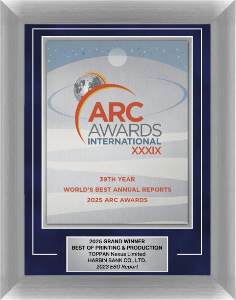 近日,第三十九届国际年报大赛(ARC Awards)全部奖项悉数揭晓。《哈尔滨银行2023年度环境、社 会与管治报告》("ESG报告")一举揽获五项大奖,包括极具分量的"印刷制作最佳"大奖及"区域银行 写作文本金奖""社会责任报告印刷制作金奖""社会责任报告银奖""ESG报告内文设计银奖"。 第三十九届国际年报大赛"印刷制作最佳"奖牌 哈尔滨银行2023年度ESG报告围绕年度重大性议题"普惠金融、加强内控、消费者权益保护、绿色银 行、人才队伍体系建设、公益慈善"等进行了披露,内容覆盖报告期内有关环境、社会与管治等方面的 政策、行动、成果与评价。以"专题:2023我们关注"的形式重点展示了该行在服务国家战略和实体经 济、注重金融消费者权益保护等方面所作出的努力和取得的突破。该报告封面设计以冰雪为主题,封面 打造雪花图案的镂空效果,配合触感柔和的纸张,体现冰雪纯洁柔美的质感。内文采用异形插页设计, 特别呈现金融助力"冰雪文化之都"建设、创新推出黑龙江省社保卡跨省办理服务等案例,体现该行稳健 经营和硬核担当,以及守护地方金融稳定与发展的坚定决心。 《哈尔滨银行2023年度环境、社会与管治报告》封套 自2014年在港 ...