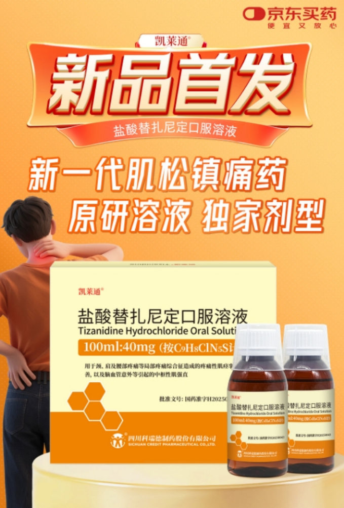 1月8日,科瑞德制药旗下原研创新药盐酸替扎尼定口服溶液(商品名:凯莱通®)在京东健康全网首 发,为疼痛与肌肉紧张患者带来全新治疗选择。京东健康也将发挥"新特药线上首发第一站"的领先优 势,帮助合作伙伴将凯莱通®触达更多患者。 区别于传统非甾体抗炎药(NSAIDs)仅聚焦炎症和疼痛本身,凯莱通®通过激动中枢α₂肾上腺素受 体,作用更全面,实现"止痛+肌松"双重作用,有效打破"疼痛—肌紧张—循环障碍—再疼痛"的恶性循 环。 在安全性方面,凯莱通®展现出显著优势。临床研究证实,其可连续使用长达13周以上,远超传统 NSAIDs通常7天的用药限制;且低剂量治疗时不良反应轻微、短暂。与同类肌松药相比,凯莱通®作用 更全面,安全性更高,不影响正常肌力,无全身乏力或跌倒风险;无撤药反应,避免了幻觉、癫痫等严 重副作用。更关键的是,它不伤胃,可保护胃粘膜,与NSAIDs联用时,形成"肌松+抗炎+镇痛"的黄金 组合,协同增效的同时可抵消NSAIDs常见的胃肠道不良反应。 凯莱通®作为科瑞德制药的拳头产品,历经20余年沉淀,始终坚持以患者为中心,现已成为四川知名品 牌和居家必备的常用药。未来,京东健康将联手科瑞德制药,持续推动凯 ...
