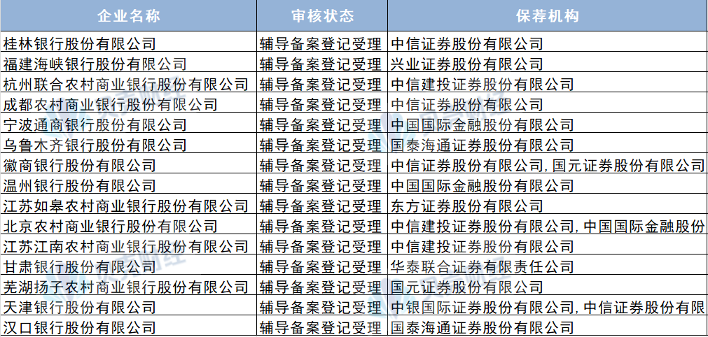 中小银行上市路:剩5家候场 进入阶段性调整期