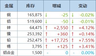 LME铜库存 | 地点 | | 前日库存 入库 出库 | | | 今日库存 变动 注册仓单 | | 注销仓单 | 注销占比 | | --- | --- | --- | --- | --- | --- | --- | --- | --- | | 铜 | 165900 | 625 | 650 | 165875 | -25 | 100475 | 65400 | 39.43% | | 昌雄 | 79000 | ess | 500 | 79125 | +125 | 48100 | 31025 | 39.21% | | 光阳 | 39150 | 0 | 0 | 39150 | 0 | 16475 | 22675 | 57.92% | | ह्या | 16800 | 0 | 0 | 16800 | 0 | 7575 | 9225 | 54.91% | | 鹿特丹 | 11425 | 0 | 150 | 11275 | -150 | 11275 | 0 | 0.00% | | 雷港 | 10575 | 0 | 0 | 10575 | 0 | 8500 | 2075 | 19.62% | | 新加坡 | 5725 | 0 | ...