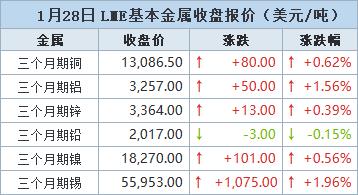 金属普涨 期铜收高,投机性上涨行情持续【1月28日LME收盘】