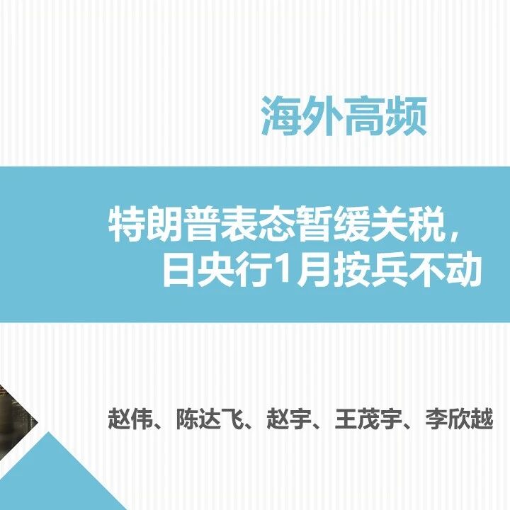 海外高频 | 特朗普表态暂缓关税,日央行1月按兵不动(申万宏观·赵伟团队) 原创 阅读全文 申万宏源宏观 ...