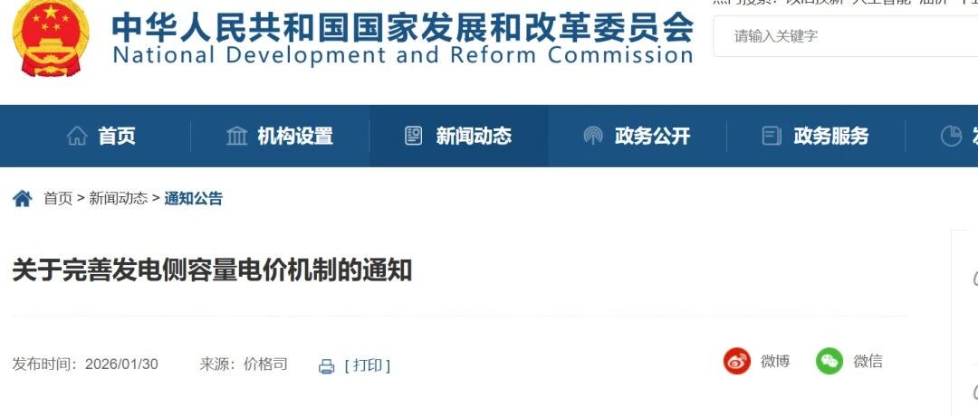 文 | 国家发展和改革委员会 2026年1月30日,国家发展改革委 国家能源局发布 《关于完善发电侧容量电价机制的通知》。 文件指出 各地可根据当地煤电容量电价标准,结合放电时长和顶峰时贡献等因素,建立电网侧独立新型储能容量电价机制。 对服务于电力系统安全运行、未参与配储的电网侧独立新型储能电站,各地可给予容量电价。容量电价水平以当地煤电容量电价标准为基础,根 据顶峰能力按一定比例折算(折算比例为满功率连续放电时长除以全年最长净负荷高峰持续时长,最高不超过1),并考虑电力市场建设进展、 电力系统需求等因素确定。电网侧独立新型储能电站实行清单制管理,管理要求由国家能源局根据电力供需形势分析及保供举措等另行明确,项 目具体清单由省级能源主管部门会同价格主管部门制定。 为贯彻落实党中央和国务院关于推进能源领域价格改革,加快建设新型能源体系的决策部署,引导调节性电源平稳有序建设,保障电力系统安全稳 定运行,助力能源绿色低碳转型,近日国家发展改革委、国家能源局联合印发《关于完善发电侧容量电价机制 的通知 》(发改价格 〔 202 6 〕 114 号 ,以下简称《通知》 ) 。 就此,记者采访了国家发展改革委 、国家能源 ...