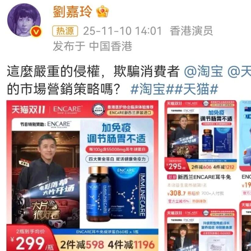 刘嘉玲喊话淘宝、天猫:欺骗消费者