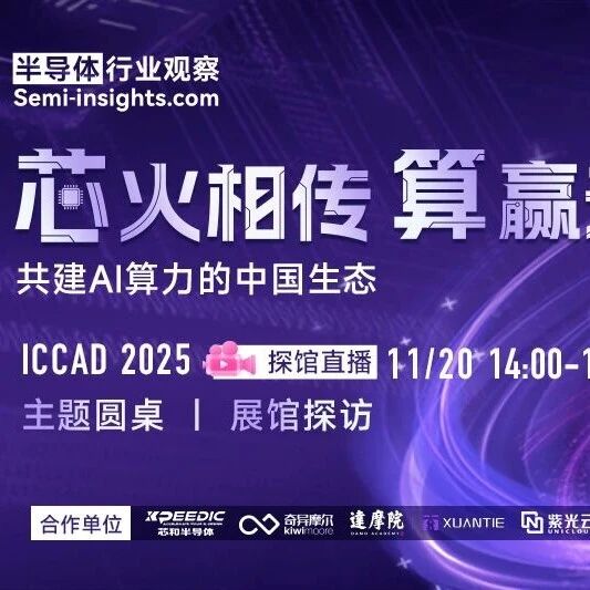 在AI大模型全面加速的时代,算力正成为创新的"第一生产力"。数据显示,2024年中国智能 算力规模同比增长高达74.1%,AI训练、推理与部署的能耗、成本曲线全面上扬。面对"内存 墙""工艺墙""互连墙"三重瓶颈,产业正以前所未有的速度推进Chiplet先进封装、异构计算、 RISC-V架构革新、分布式集群等技术路径。 然而,在构建自主可控的AI算力生态过程中,本土产业仍面临从工具到架构、从算力融合到生态 协同的多层挑战: 基于这些痛点与关键问题,半导体行业观察携手ICCAD 2025策划推出"共建AI算力的中国生态"主 题直播论坛与展馆探访活动——汇聚 芯和半导体、奇异摩尔、达摩院玄铁、紫光云、安谋科技 Arm China、硅芯科技 六大企业,从EDA、IP、Chiplet、RISC-V、云服务、2.5D/3D堆叠技术 等维度展开深度对话,共探中国AI算力生态的破局之道。 2025年11月20日 14:00-16:00 扫码提前预约精彩直播 视频号 B站 直播时间 直播平台 自主可控的算力体系,突破从何开始? 从Chiplet到系统,如何构建可演进的算力架构? 多元算力融合,如何让AI生态协同共进? 协同创 ...