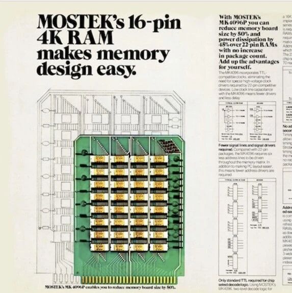 公众号记得加星标⭐️,第一时间看推送不会错过。 Mostek 的 16K MK4116 及其 64K 后继产品 MK4164 成为 20 世纪 70 年代末和 80 年代初微型计 算机的 DRAM,并制定了该行业多年来遵循的惯例。 20世纪70年代后半期,系统内存发展日新月异。虽然英特尔的1103已经证明DRAM可以取代磁芯存 储器,但要将1Kbit内存扩展到适用于微型计算机的规模,既需要更优化的单元设计,也需要更易于 使用的接口。Mostek公司推出的MK4116正是满足了这一需求。这款16Kbit DRAM将高密度单晶体 管单元与该公司如今已成为传奇的地址复用方案相结合。 几年后,MK4164 将容量扩展到 64Kbit,并解决了早期 DRAM 存在的多电压问题。它们共同成为 第一代消费级微型电脑和早期个人电脑的实际标准 RAM 架构。 16K DRAM 成为人人都用的 16K DRAM 1977年,Mostek推出MK4116时,动态存储器市场仍在摸索前进。设计人员此前花费数年时间才解 决了1103的时序裕量和外部刷新逻辑问题。MK4116通过提供简洁的RAS/CAS协议,并将16Kbit的 容量封装在 ...