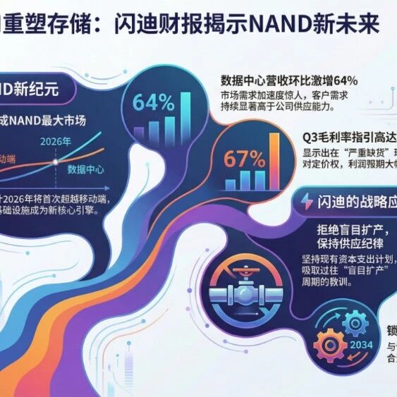 面对盘后一度飙升15%的股价,公司管理层在电话会中不仅确认了全面超出预期的亮眼业绩,更向市场传递了一个明确信号: AI对存储的需求并非昙花一现, 而是一场正在发生的结构性变革。 不仅是热度,更是真金白银:"数据中心2026年将成NAND最大市场" 市场最关心的问题在于:AI的热度是否已经转化为实际的营收?存储究竟是短期行情还是长期结构性变化? AI重塑NAND行业:"NAND成为AI基础设施的关键组件" 电话会上,CEO戈克勒更是直接给出了对行业变化的判断。他表示: "NAND现在被视为满足全球存储需求不可或缺的技术。" "这正在推动供应商与客户之间的商业关系发生根本性的变化。" 他进一步指出,随着AI在数据中心和边缘侧的部署不断扩大,存储的作用已经发生变化: 对此,闪迪CEO戴维·戈克勒(David Goeckeler)在会上直言: "这是第一次,数据中心预计将在2026(日历)年首次成为NAND的最大市场。" 美股周四盘后,存储巨头闪迪(SanDisk)召开2026财年第二季度财报电话会议。 这或意味着,过去十几年由智能手机和PC主导存储周期的时代即将结束,AI基础设施建设成为了新的核心引擎。随着AI推理 ...