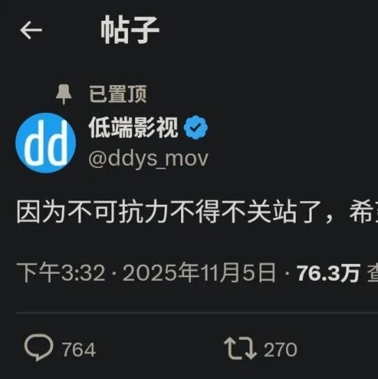 低端影视采取的关站措施也比较简单粗暴,目前该网站的主要域名 ddys.mov 和 ddys.pro 均已经删除解析,所以用户目前尝试访问这些域名都是无法 正常连接的。 而关站公告则是通过订阅频道和社交账号发布的,可以看出来采取关站似乎是紧急措施,否则应当保留域名访问挂上公告才对,部分用户发现无法访问还 以为是网站服务器出现问题。 以下文章来源于蓝点网 ,作者山外的鸭子哥 蓝点网 . 科技资讯、软件工具、技术教程,尽在蓝点网。蓝点网,给你感兴趣的内容 #网站应用 在线影视资源站点「低端影视」关停网站,疑似是因为版权方面的问题。目前低端影视两个主要域名 ddys [.] mov 和 ddys [.] pro 均已删除解析,相关公告则是通过订阅 频道和社交帐号提供的,因此关停网站似乎比较急,否则应该保留域名访问挂上公告。查看全文:https://ourl.co/111095 颇受爱好者们欢迎的在线影视资源站点「低端影视」目前已经宣布关停网站,其官方账号发布的消息称因为不可抗力因素不得不关站,通常来说此类影视 资源站点主要都是版权类问题。 在网站关闭后其他基于低端影视的服务例如部分在线解析和搜索脚本也同步失效,考虑到 ...