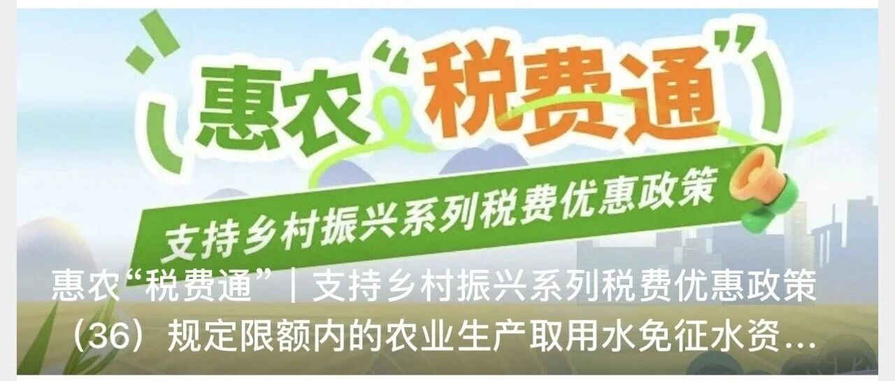 惠农“税费通”|支持乡村振兴系列税费优惠政策(36)规定限额内的农业生产取用水免征水资源税