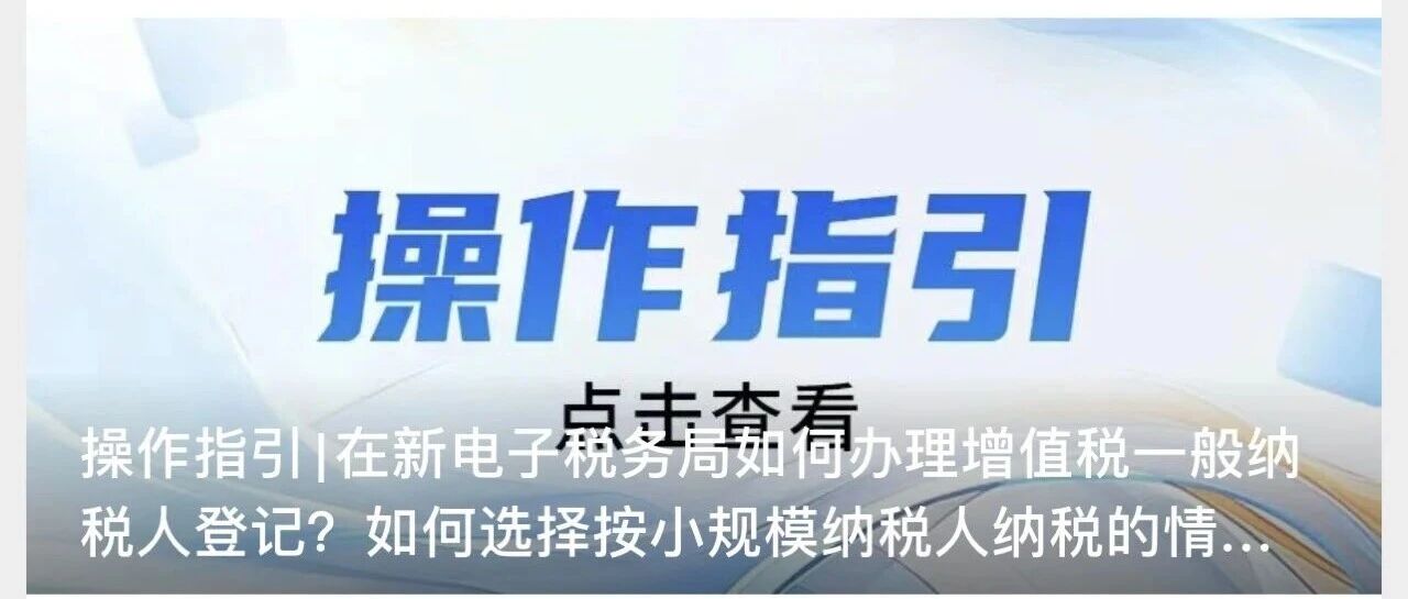 操作指引|在新电子税务局如何办理增值税一般纳税人登记?如何选择按小规模纳税人纳税的情况说明?