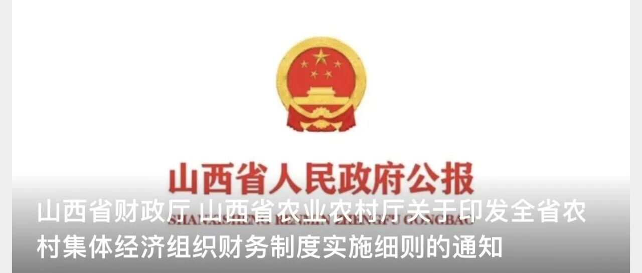 山西省财政厅 山西省农业农村厅关于印发全省农村集体经济组织财务制度实施细则的通知晋财规农〔2025〕1号