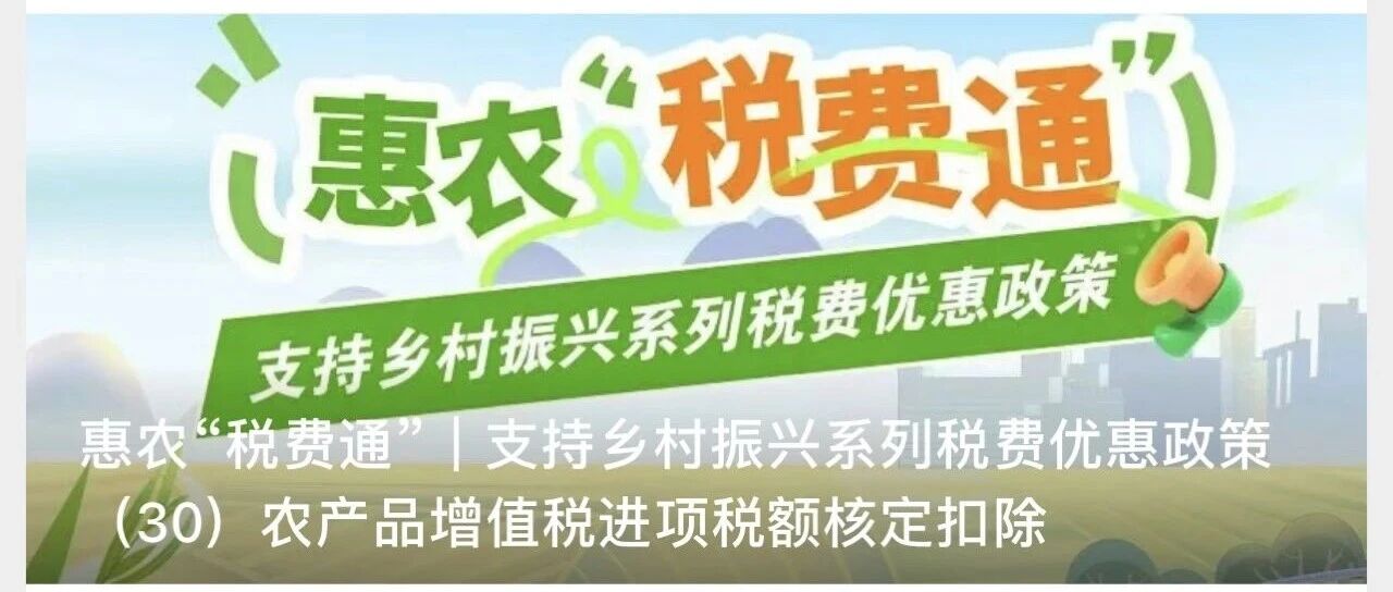惠农“税费通”|支持乡村振兴系列税费优惠政策(30)农产品增值税进项税额核定扣除