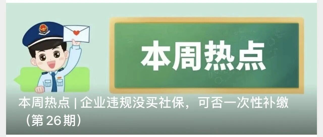 本周热点 | 企业违规没买社保,可否一次性补缴
