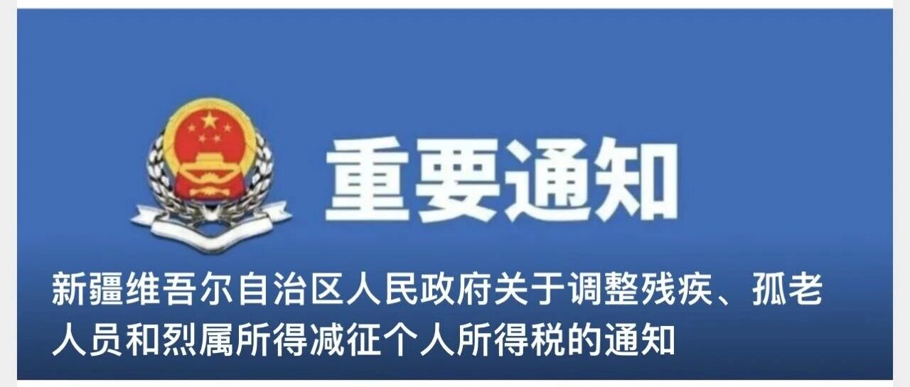 新疆维吾尔自治区人民政府关于调整残疾、孤老人员和烈属所得减征个人所得税的通知新政发〔2025〕72号及解读