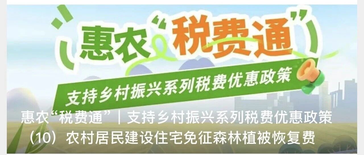 惠农“税费通”|支持乡村振兴系列税费优惠政策(10)农村居民建设住宅免征森林植被恢复费