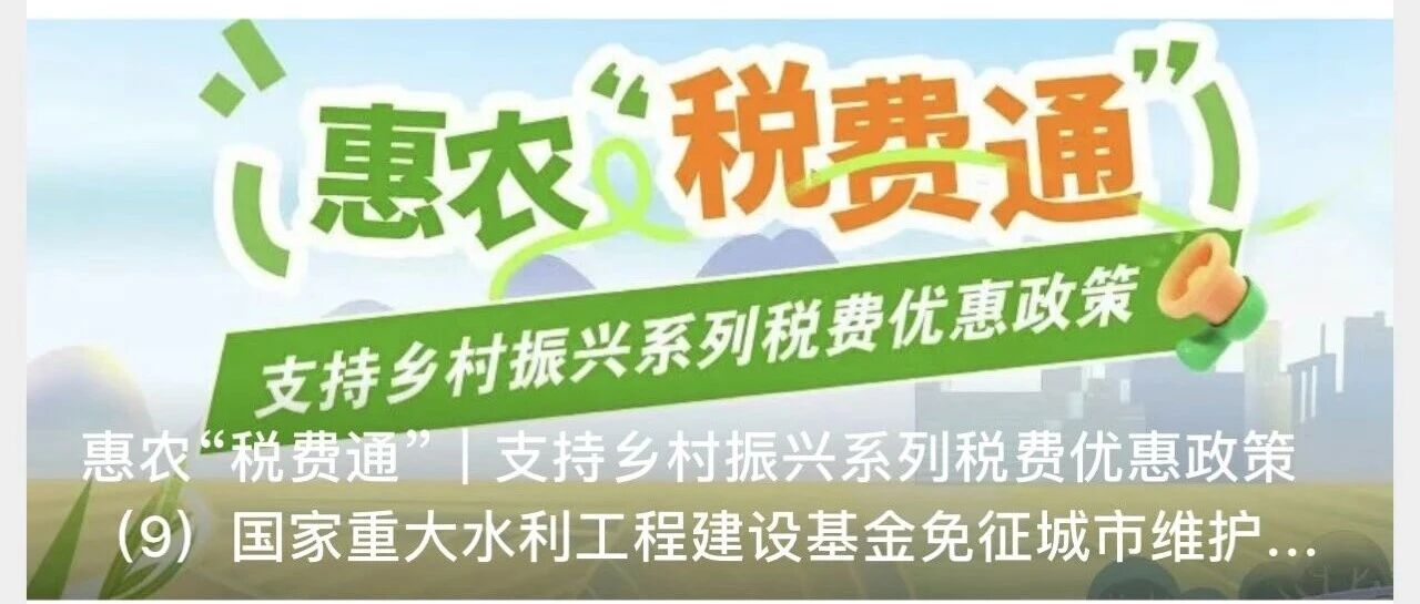 惠农“税费通”|支持乡村振兴系列税费优惠政策(9)国家重大水利工程建设基金免征城市维护建设税和教育费附加